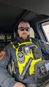 Mit dem mitgelieferten Quickrelease Gürtel und Mollewesten Holster kannst du die Tasche blitzschnell vom Körper lösen und sofort in Position bringen.